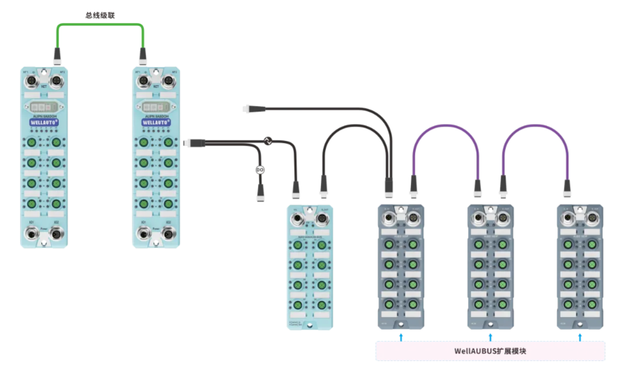 在扩展能力上,模块通过2路M12 D-code 4pin孔端实现总线级联通讯,8路IO-Link端口支持IO-Link 4级扩展,但自身丰富的I/O接口和灵活的配置方式,已能满足多数场景的需求。