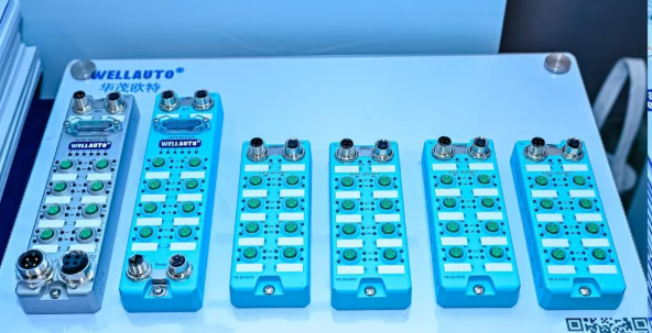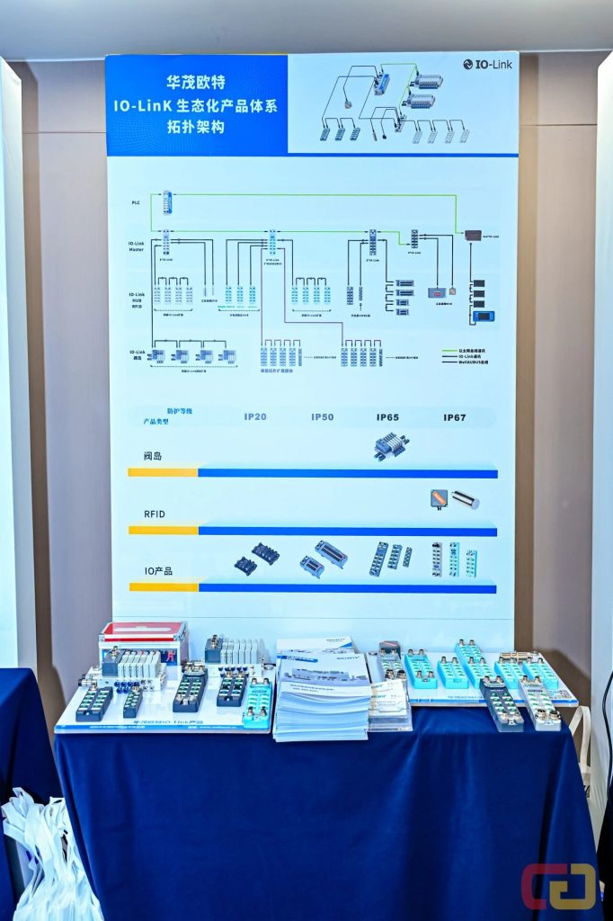 现场交流环节中,华茂欧特同步搭建产品展示区,呈现多款IO-Link核心产品:包括行业体积最小的M8从站(相较传统从站体积缩减近1/4,适配紧凑安装场景)、采用“整机发货”模式的IO-Link阀岛(具备IP65高防护等级,支持 4级扩展功能),以及华茂欧特首创“星型 + 串型” 一体化架构的高防护IO产品(最大可扩展56个模块,支路总长度达780米)。